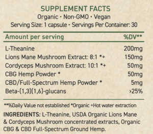 CBG-M Calm Focus Full-Spectrum CBD/CBG & Mushroom Blend Capsule 1500MG CBG & 6000MG Mushroom Extracts